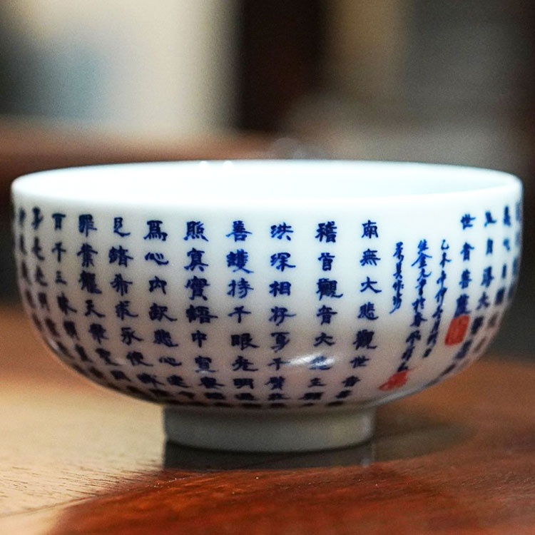 春风祥玉邹俊窑手绘青花缠枝莲西番莲凤尾莲广口杯主人杯普洱茶杯
