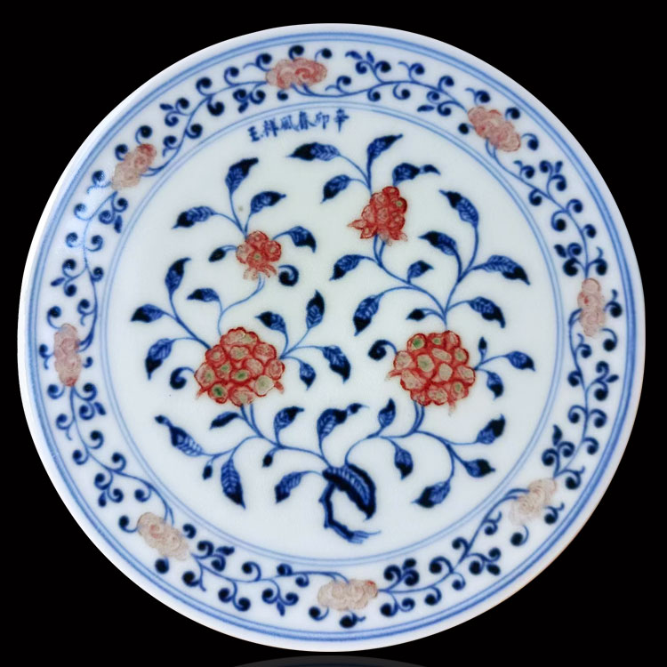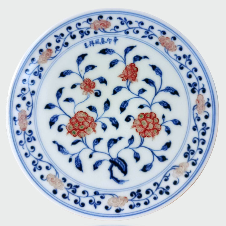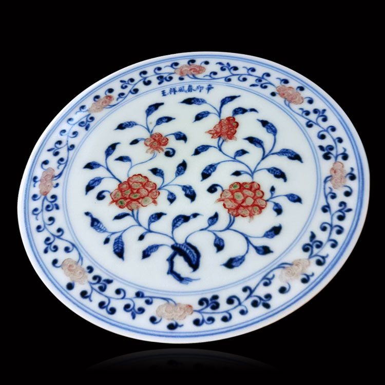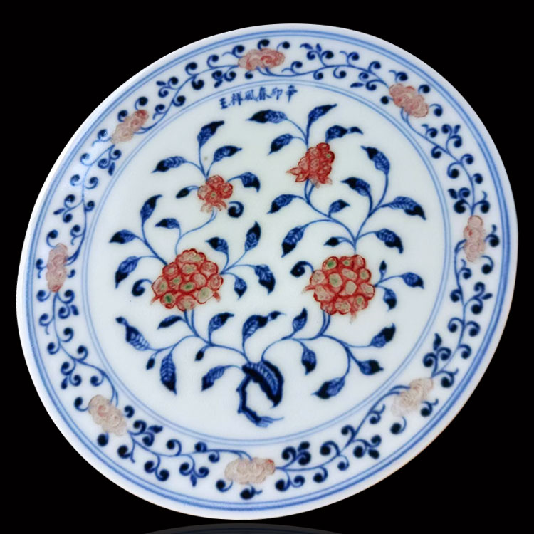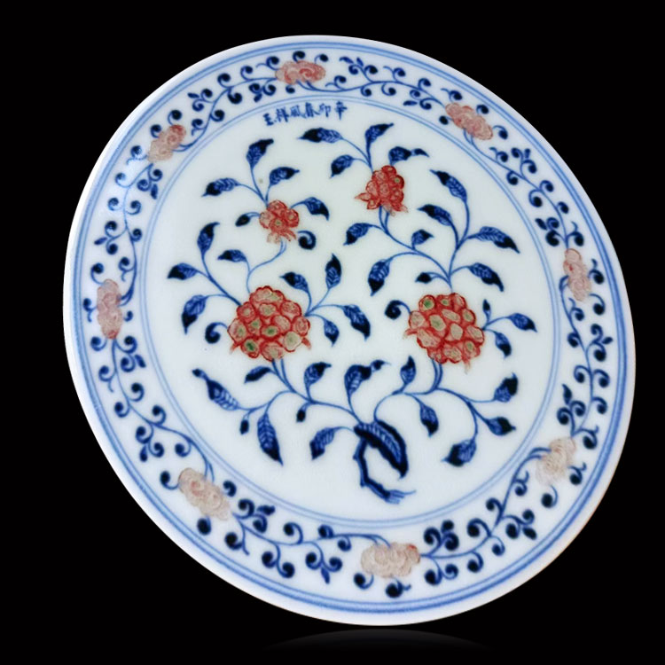 春风祥玉釉里红缠枝莲茶盘 邹俊窑2011年辛卯款 手绘花卉赏...